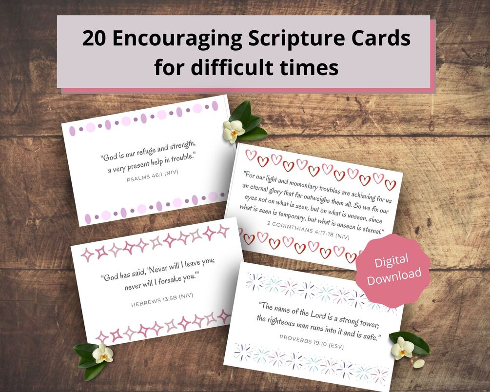 20 Printable Scripture Cards of Bible Verses for Difficult Times