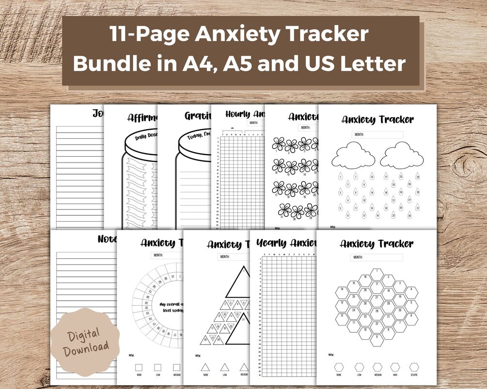 11-Page Printable Anxiety Journal; Anxiety Tracker