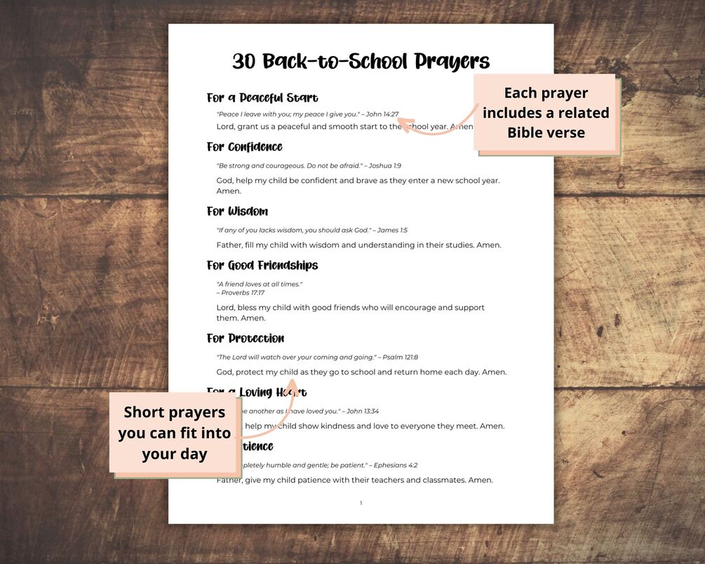 This set of 30 back-to-school prayers is a great way to cover your children in prayer as they go back to school – or any time of the year!