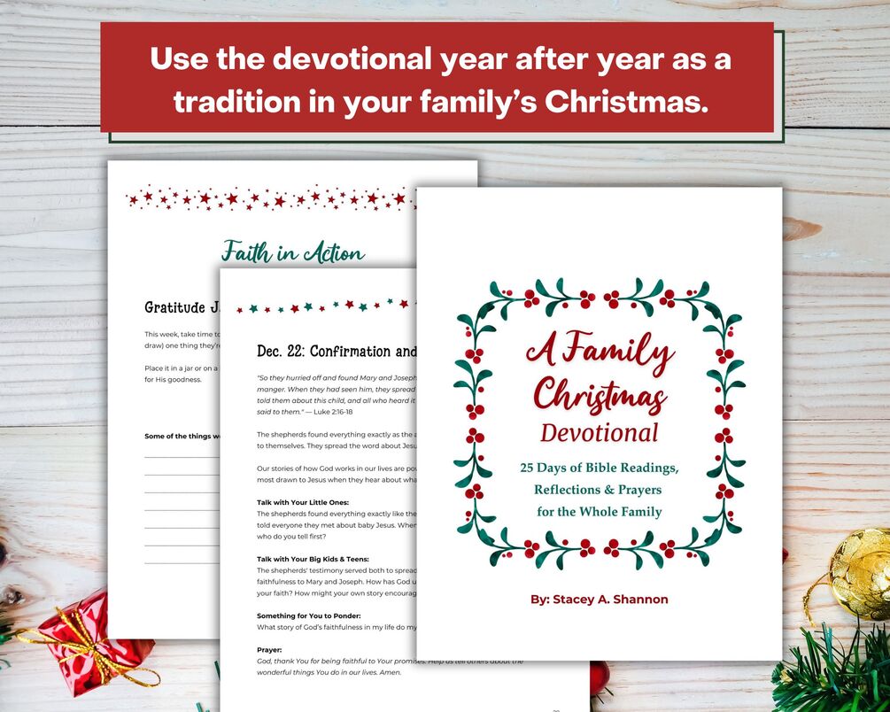 A Family Christmas Bible Devotional is designed for real families with real schedules. In just 5 minutes a day, you can pause together, read God’s Word, reflect on it and pray. This 25-day devotional helps you keep Christ at the center of the season without adding stress to your to-do list.