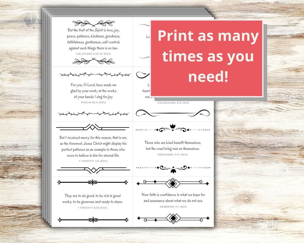 Please note this is a digital download, and no physical item will be sent to you. These Fruit of the Spirit Scripture cards are intended for personal use only and should not be resold in either physical or digital format.