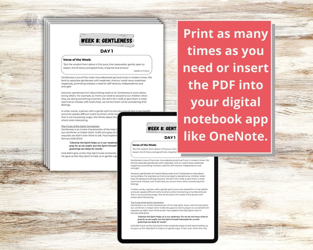 Ready to embark on a journey of spiritual growth and self-discovery? Download this Fruits of the Spirit: Gentleness Devotional Bible Study today and infuse your days with love, joy and grace.