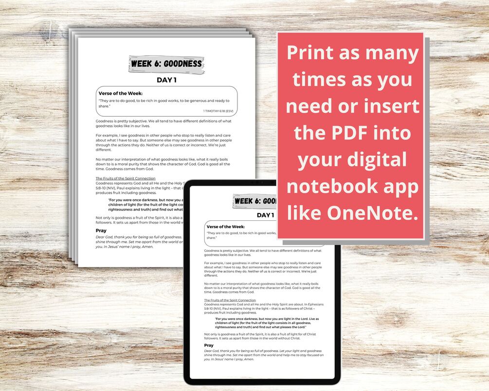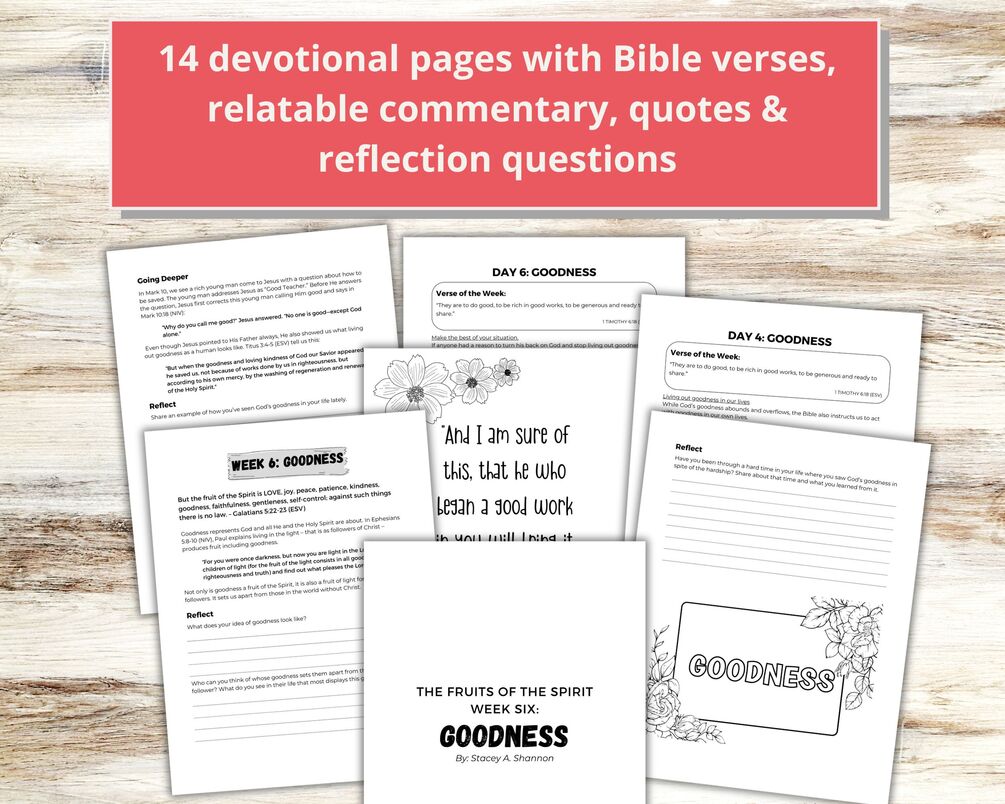 Ready to embark on a journey of spiritual growth and self-discovery? Download this Fruits of the Spirit: Goodness Devotional Bible Study today and infuse your days with love, joy and grace.