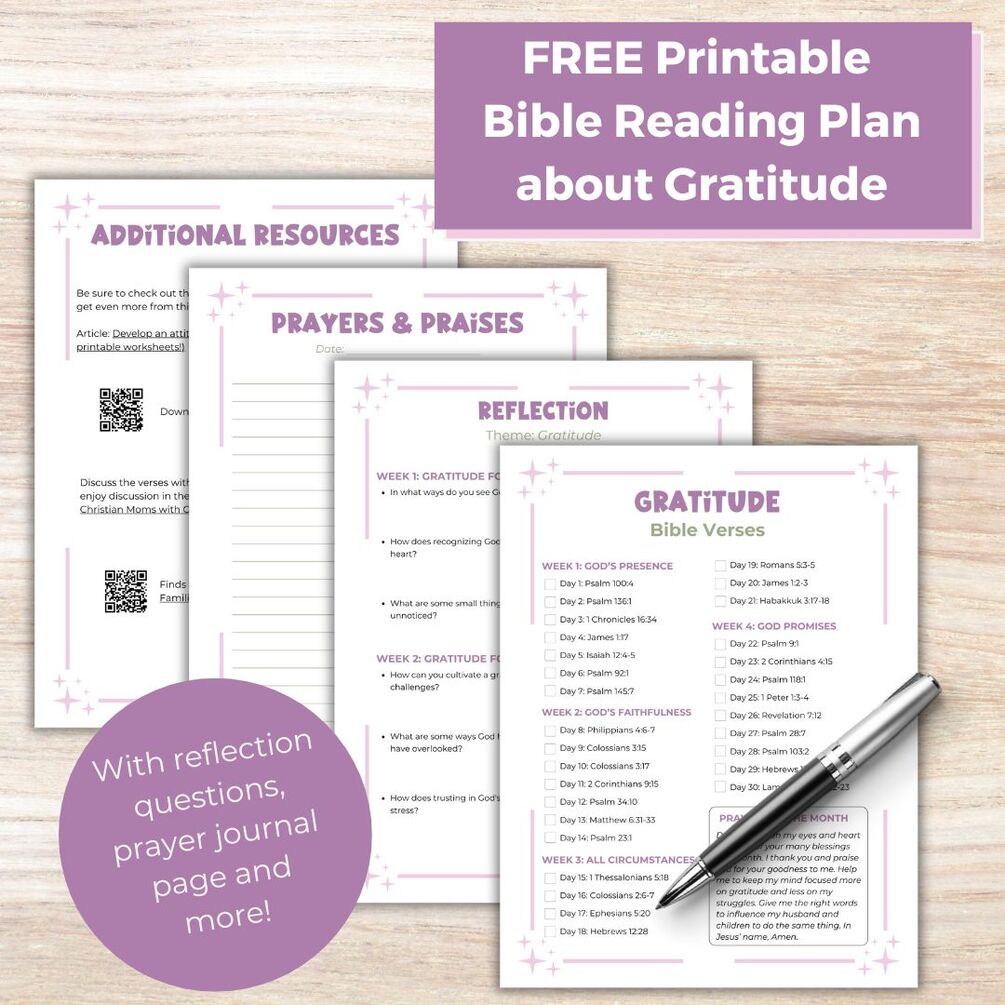 This 30-day Bible reading plan about gratitude is great for busy moms on the go. It includes one or two verses each day and three reflection questions for each week.