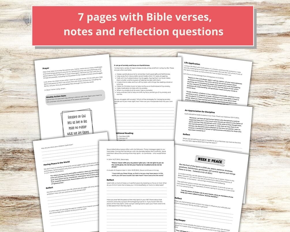 Looking for a simple yet meaningful way to nurture your spirit and reflect on the Fruits of the Spirit as a mom? Dive into our collection of 7 beautifully crafted journal pages designed specifically for moms like you. With a blend of Bible verses, reflection questions and insightful commentary, these pages offer a moment of peace and inspiration in the midst of your busy days.
