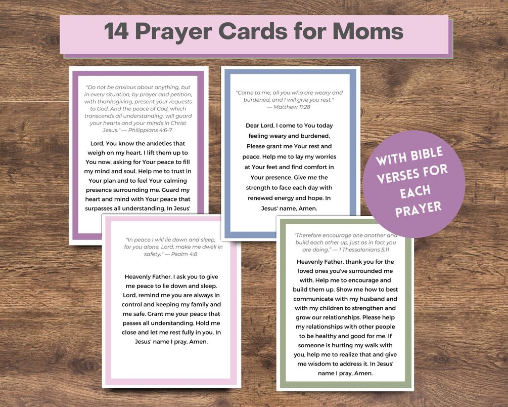 14 Prayer Cards for Moms with Bible verses for each prayer