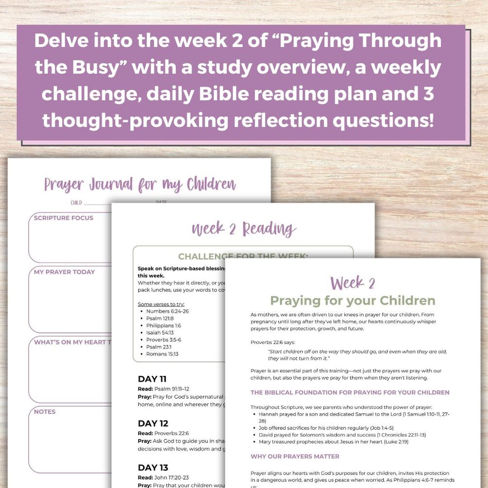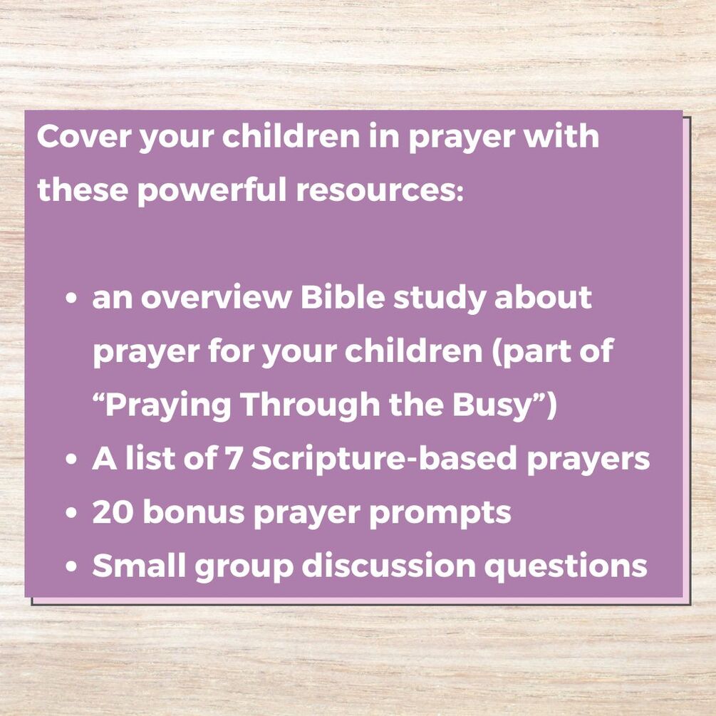 This free resource pack is part of the Praying Through the Busy Bible study and is designed to help Christian moms cover their children in Scripture-backed prayer with focus and faith.